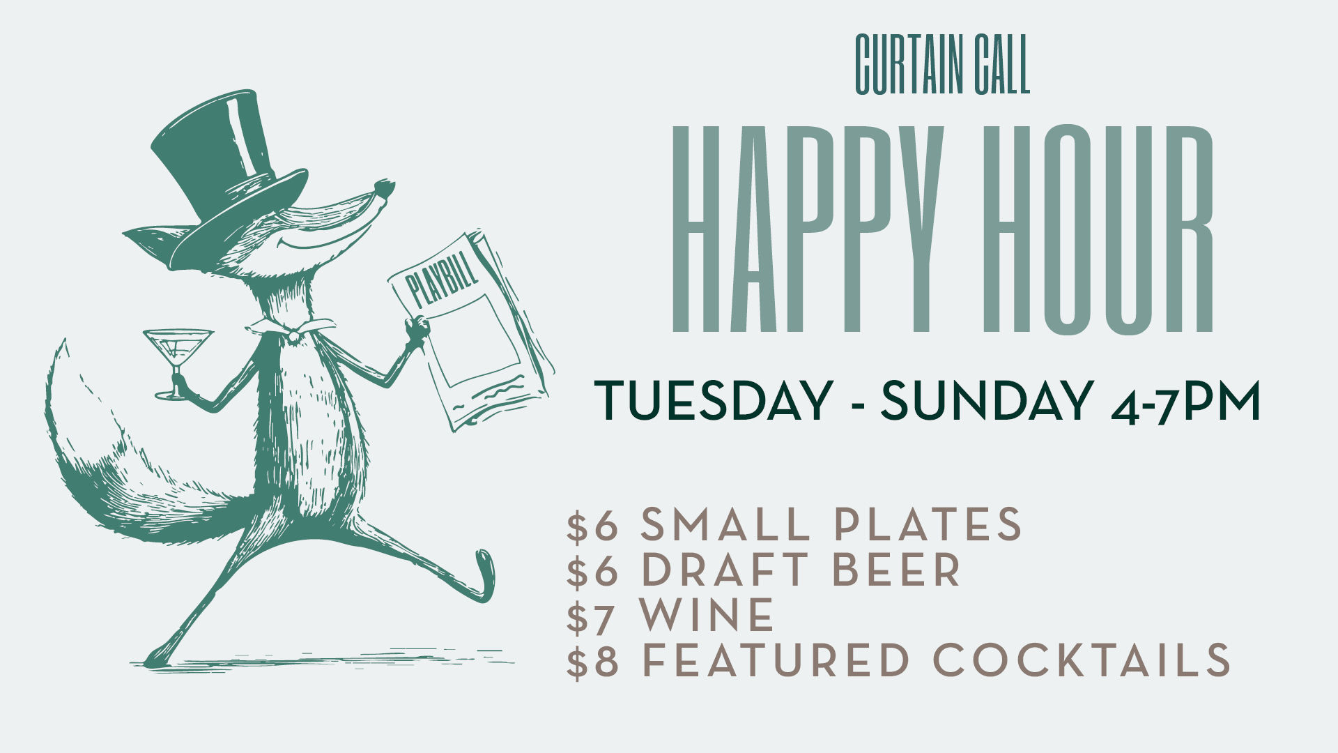 Curtain Call offers a thoughtfully crafted menu that shifts with the mood of the day. Enjoy rich coffee, a relaxed lunch, or light bites in a casual setting during the day, then explore a menu of small sharing plates paired with expertly mixed cocktails in the evening. The perfect destination whether you're stopping in before a performance or simply soaking up the atmosphere.